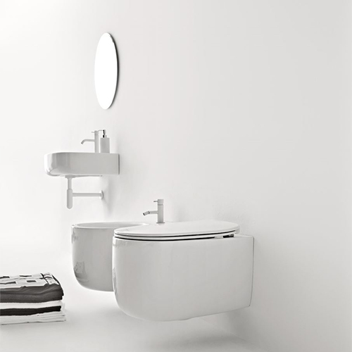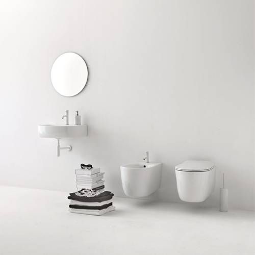 The Nolita wall hung toilet pan fully satisfies a common need for refinement and aesthetic thanks to a basic but essential design. As well known by the experts in this field, a bathroom should not only be comfortable and functional but, it is important that all the existing fixtures also be pleasing to the eye, in order to make the room even more welcoming and intimate. The clean but decisive lines, the brightness of the glaze and the minimalism of the visual perception contribute to depict a setting of remarkable elegance. This toilet has been planned and produced by professionals in sanitary ware and it is characterised by simple beauty with a highly decorative potential. This product, in addition to being useful and functional, is a truly ornamental object and stands out among the other bathroom fixtures.