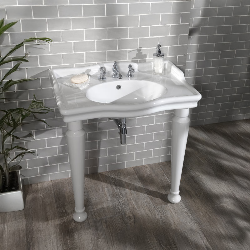 The Loxley 860mm Basin with legs is a suitable addition to any traditional bathroom suite. An elegant timeless piece that will suit any vintage bathroom décor. The beautifully handcrafted china legs are a great match to the elegant basin. Creating a luxurious product that will gracefully tie together any classic bathroom suite.