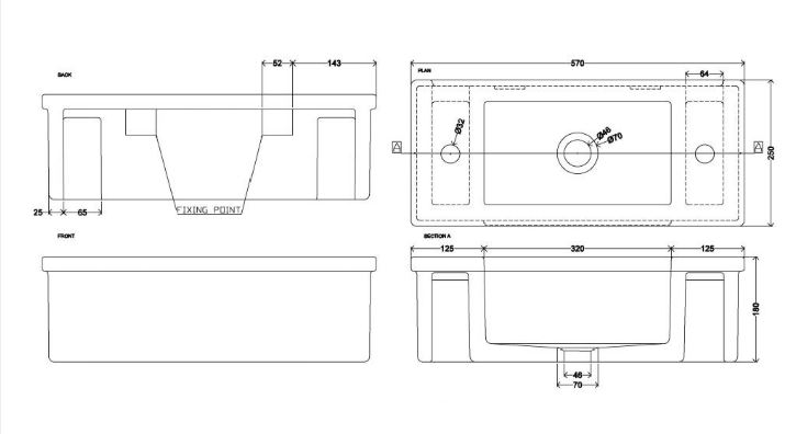 The Thomas Crapper Bentham Cloakroom Basin, with a size width of 570mm and a depth (front to back) of only 250mm the Bentham basin is ideally suited to the most compact of cloakrooms, whilst the substantial fireclay construction ensures it will not look out of place in a larger space. Thomas Crapper offers premium quality ceramics, meaning this basin is built to last a lifetime in both modern and traditional-style bathrooms. Note: Due to the size and weight of the Bentham basin, we recommend using medium brackets for installation.