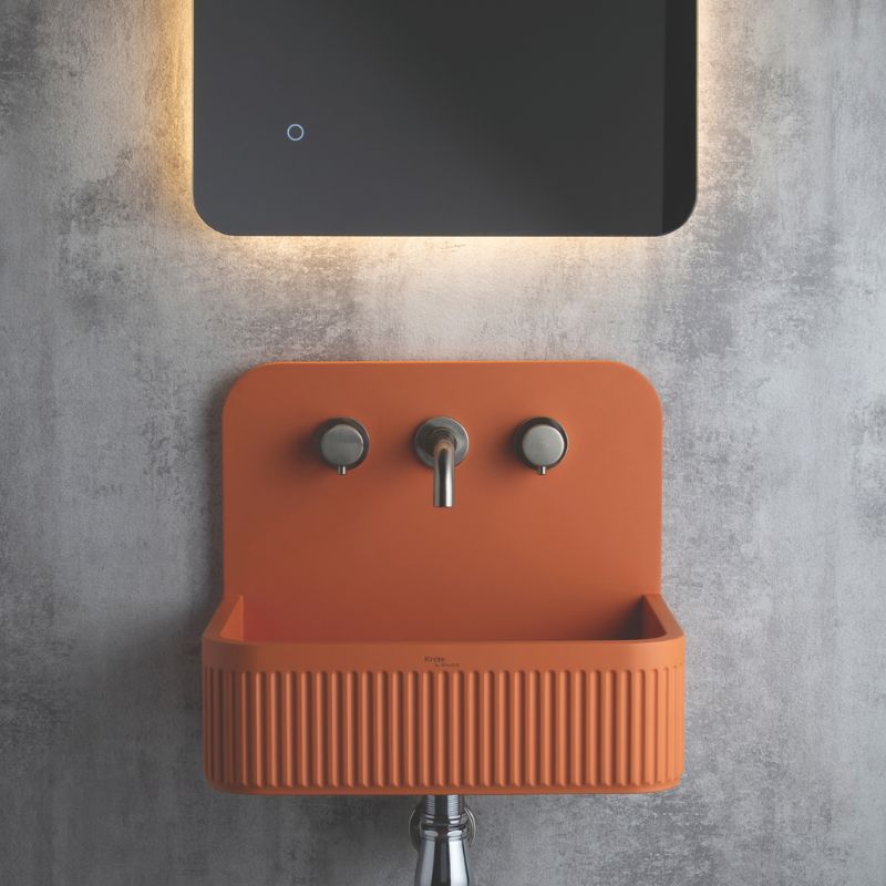 The Zaros Concrete Basin is made from high-density concrete chosen for strength, surface quality and natural variation. It features an integrated splashback with a stunning fluted front.